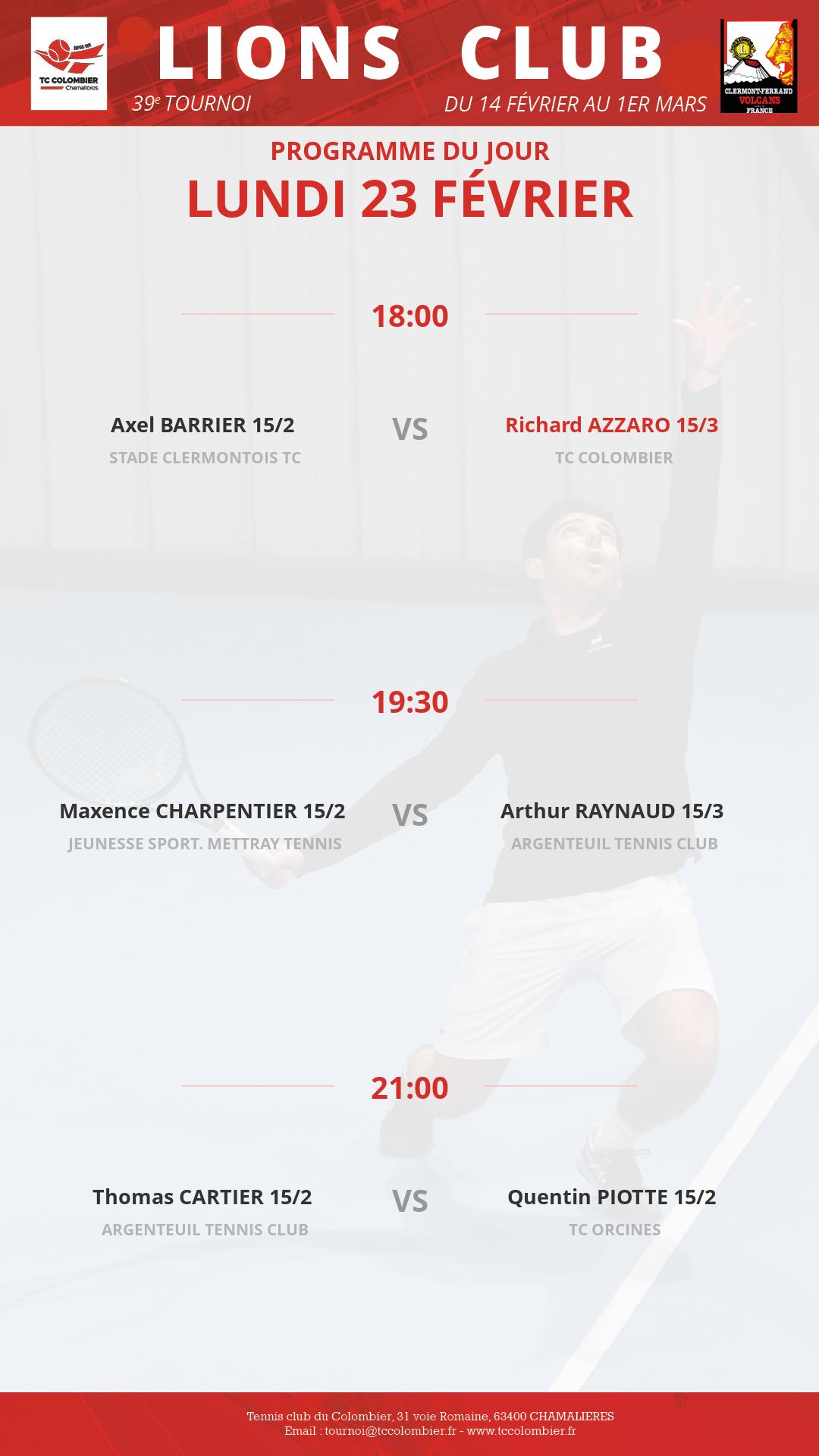 Remporte la victoire face à Julien Mialier (15) sur le score de 6/4 6/4.