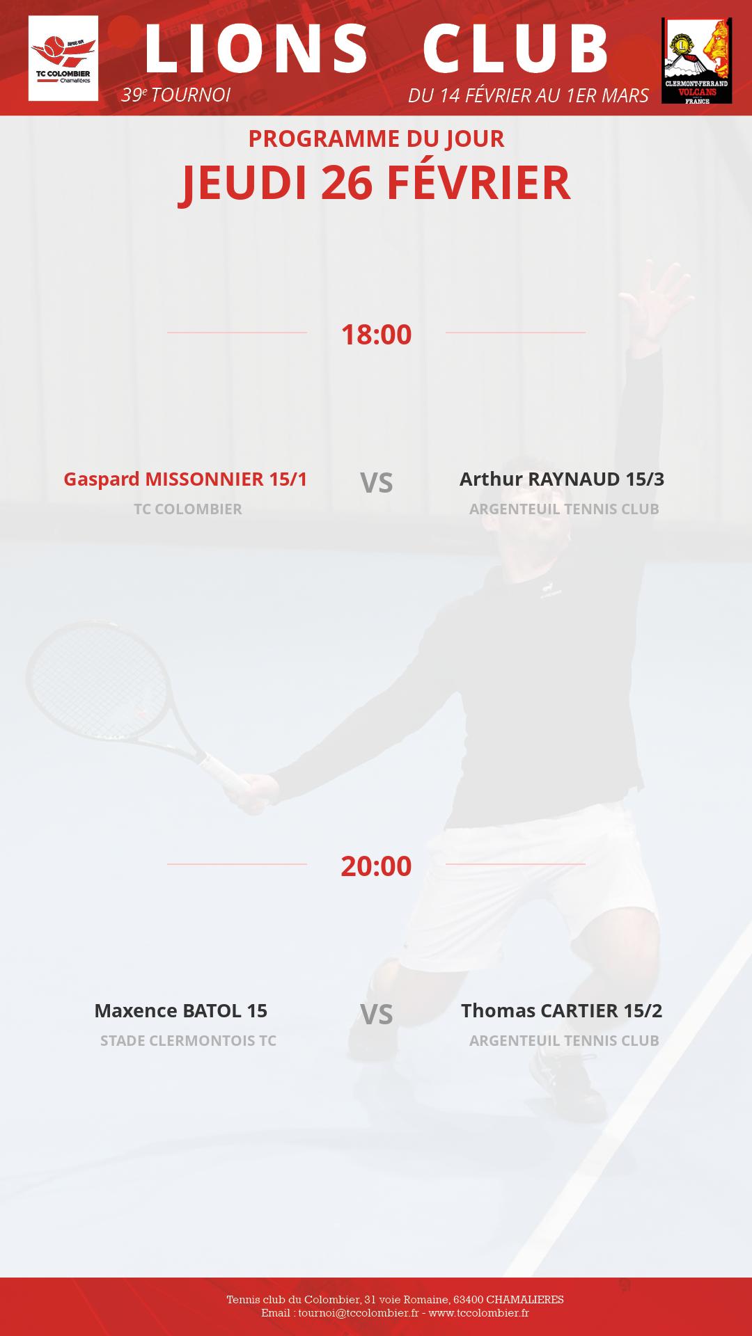 Remporte la victoire face à Julien Mialier (15) sur le score de 6/4 6/4.