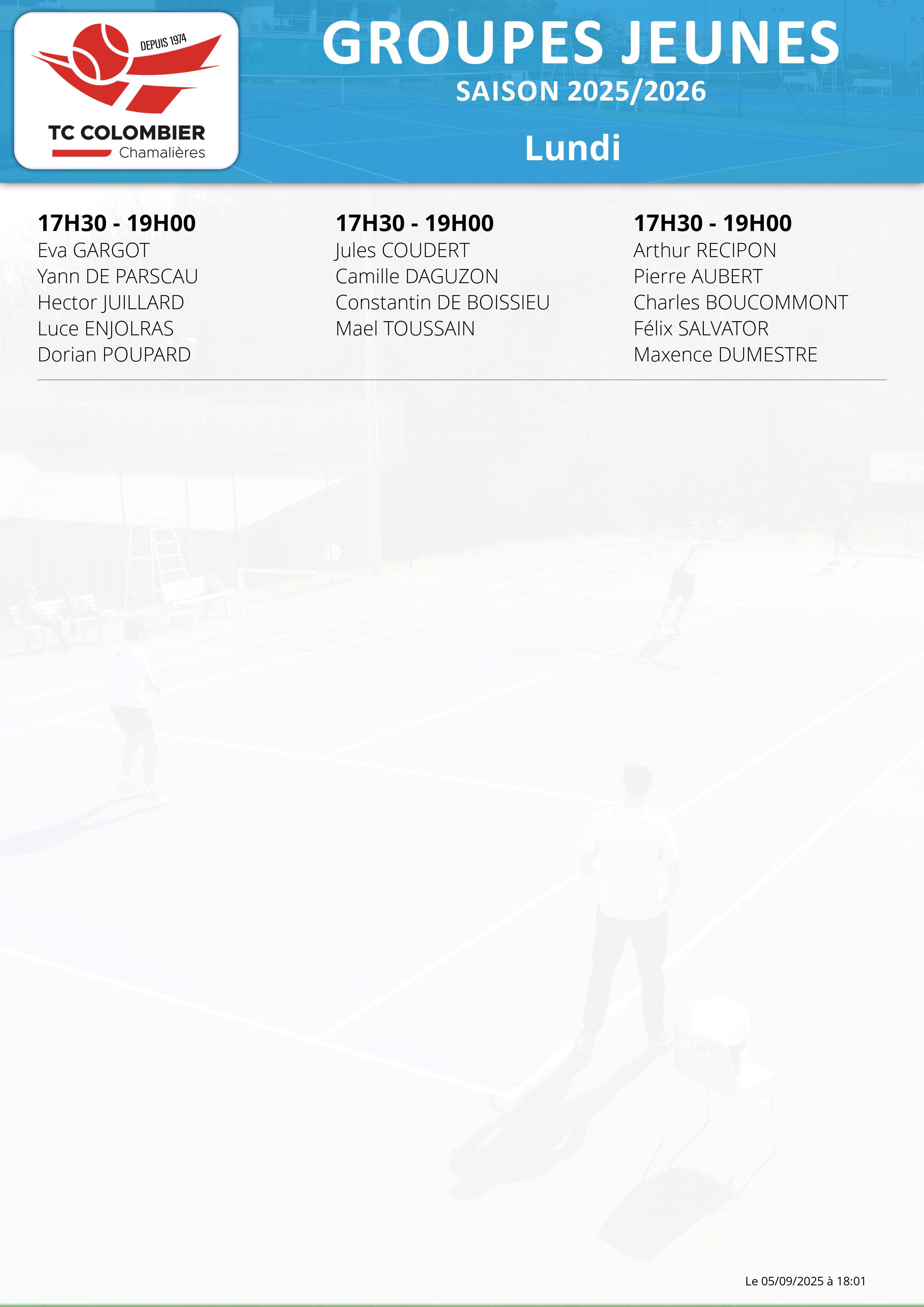 COURS JEUNES - SAISON 2023/2024